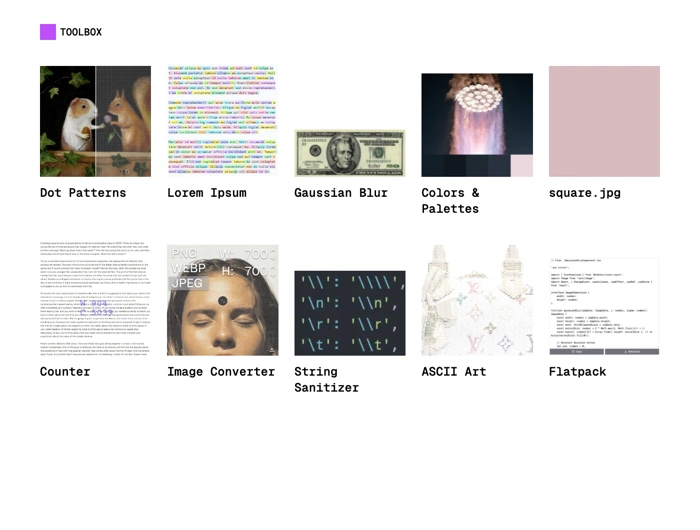 - Create dot patterns, ASCII art, and Gaussian blurs from images